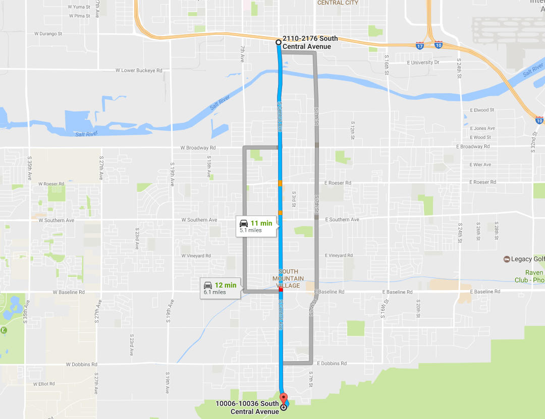 Travel south on I-17 past the western junction of I-10 and I-17 From the I-10/I-17 junction (just west of downtown Phoenix), follow I-17 south, then: