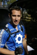 Forest Brown showing off his home-made handlebar-mounted map board. (Photo by Rick Inskeep)