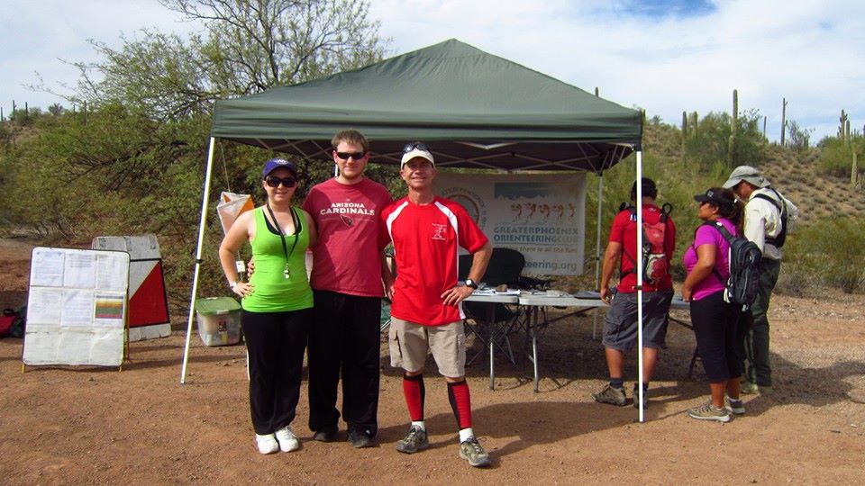 This year's event at Lake Pleasant was held on a mostly sunny 82F day. The few high clouds that drifted by held the temperature down a bit. The event was changed to a 3 hour Score-O to allow the participants a better chance of getting all 24 controls. One team did, with a few minutes to spare. The controls were hung in the very challenging terrain west of the blacktop access road were you might see a javelina or two. The 25 orienteers crisscrossed the terrain thoroughly and nobody got lost. There was a small scare for a moment, when one team member came back on his own. We don't want teams to split up. Nobody stayed out too late and leading up to closing time, the lead changed several times. We had new club members join us, we had families, young couples and all seemed to enjoy the opportunity to hike and navigate in a terrain most people never see. A good day for all.