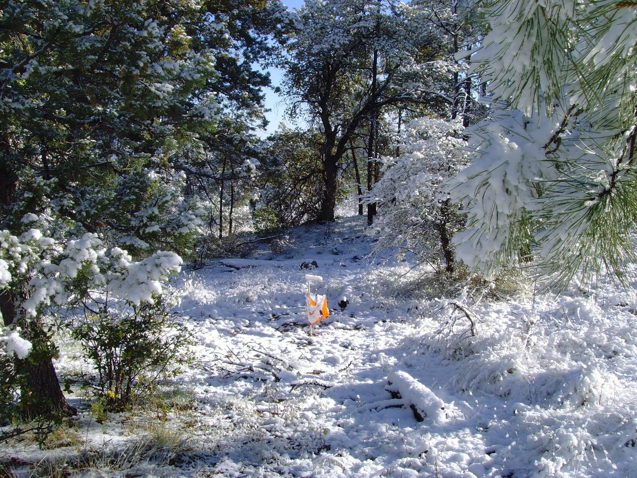 Early arrivers at the Big Alligator Juniper start area were a bit surprised by the 2 inches of snow that fell overnight, but were treated to some gorgeous views and excellent weather. Since the woods were so wet, we delayed the start of the adventure race to 9 AM to let things melt a bit, and switched the format to begin with the biking segment. By 10:30, you could hardly tell that it had snowed. We also switched the Score-O to have a 3-hour time limit, which allowed our two top finishers to visit all 30 controls.